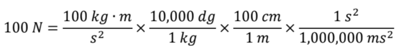 100 dg∙cm∙(ms)^−2 = 1.0 x 10^2(dg∙cm∙(ms)^−2)