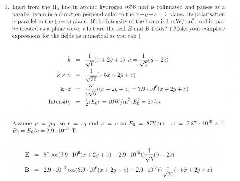 ##E(r, t) = E_0 \ cos (k.r - \omega t) \hat{n}##