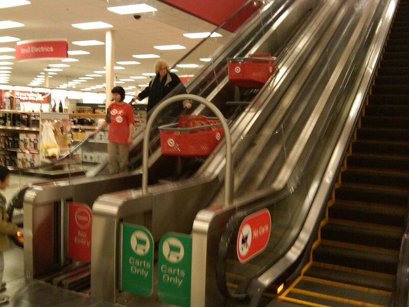 - Some participants discuss the design of escalators for shopping carts, noting differences in design and functionality across regions.