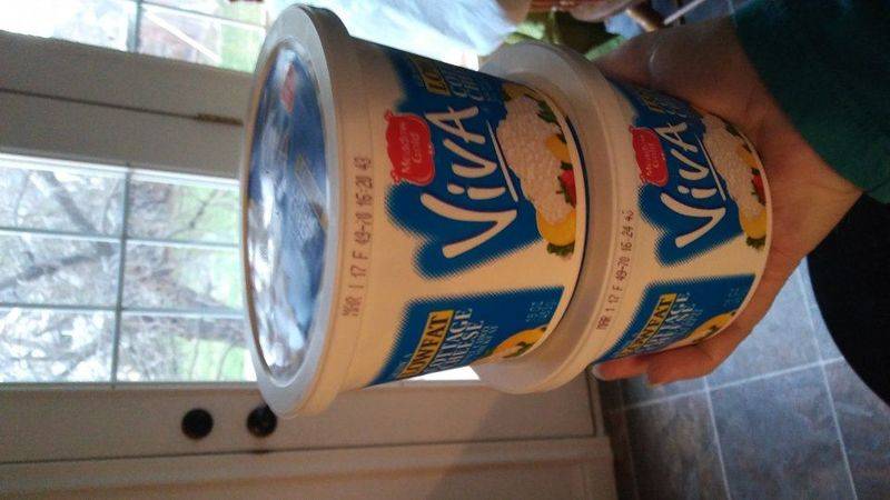 I noticed something odd today while removing two identical tubs of cottage cheese from the fridge. They were stacked one on top of the other with no visual way to tell if a container was half full or completely full. When picking them up at the same time by only grasping "the lid of the bottom container," I felt that the bottom tub was more full than the tub on top. When I checked I found that I was right.