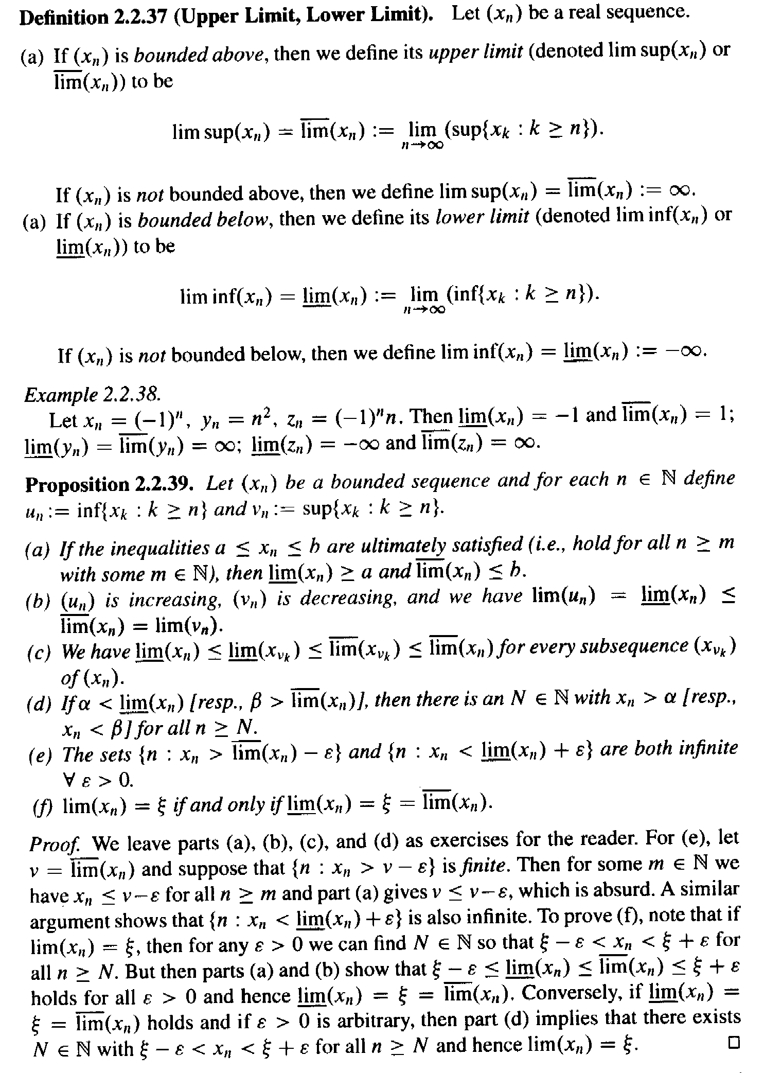 I need help with the proof of Proposition 2.2.39 (b)Proposition 2.2.39 (plus definitions of upper limit and lower limit ... ) reads as follows: