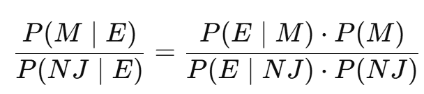 You said a joke to a girl. She didn't laugh (let this be behaviour/evidence E). Was this because she is mad at you (let it be M) or because she didn't get the joke (let it be NJ , and it be 1 - p(M) = p(NJ)). So we have just 2 hypotheses M and NJ that is all. Now how to assign probabilities to such expression: