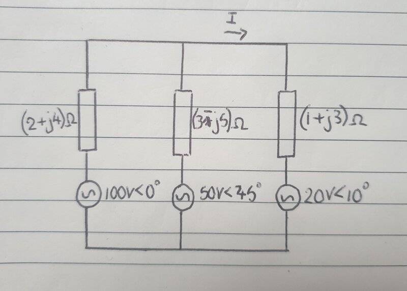 - Use a voltage nodal analysis to solve the current I flowing in the AC circuit