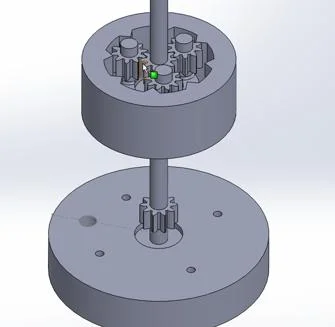 - i want to use 1 motor to turn the shaft. lets say shaft turns clockvise, there is two discs on shaft. discs have to turn same speed reversed rotation. i drawed reverse clockwise motion. it is 1:5 slower than shaft. when i drawed other disc (rotates clockwise like motor) it turns speed of shaft so 5x speed.