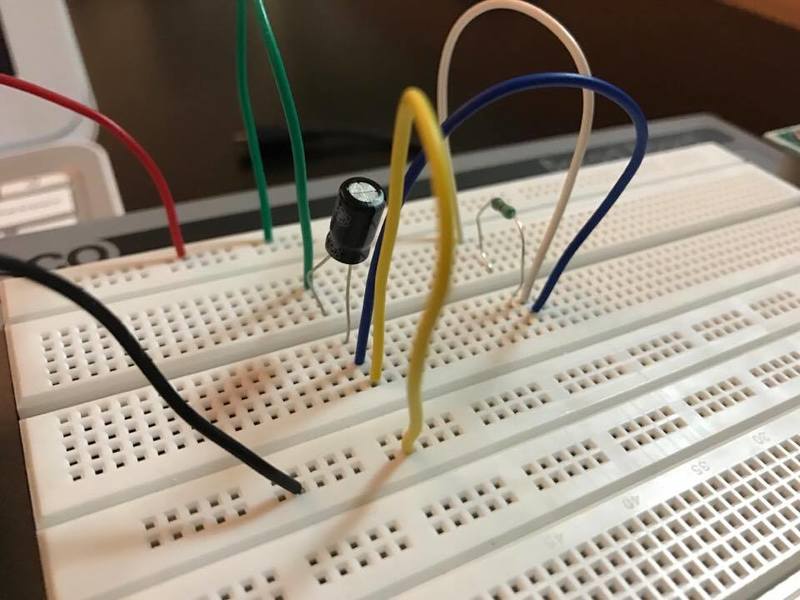 I'm fairly new at breadboards and I've tried to set up how I think it should be (BUT I've used a resistor instead of the second capacitor since I didn't have any on me at the moment AND I will be replacing it with a capacitor when I get the chance but just needed to see if the connections were correct.
