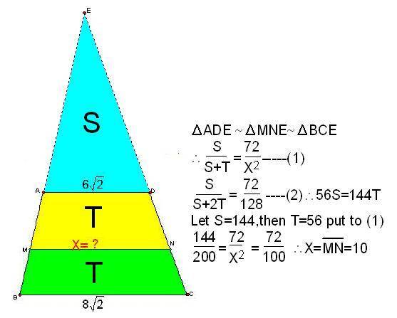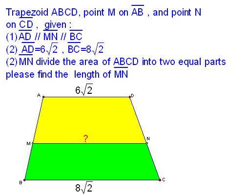 $$\overline{MN}=y\left(4-\frac{5}{\sqrt{2}} \right)=-2\sqrt{2}\left(4-\frac{5}{\sqrt{2}} \right)+8\sqrt{2}=10$$