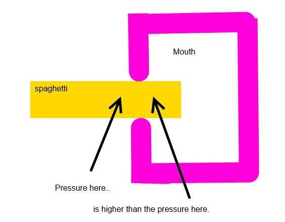 I have a somewhat dumb question. It is based on the fact that I can create a small vacuum in my mouth to move that "string" of spagetti into my mouth.