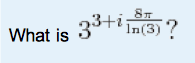 The discussion centers on evaluating the expression involving complex numbers, specifically 3 raised to the power of 3 plus a complex component. The calculations reveal that 3^(3 + i(8π/ln(3))) simplifies to 27, utilizing Euler's identity. The final result confirms that the expression evaluates to the real number 27, demonstrating the application of logarithmic properties and complex exponentiation.