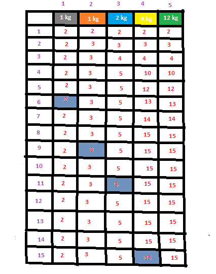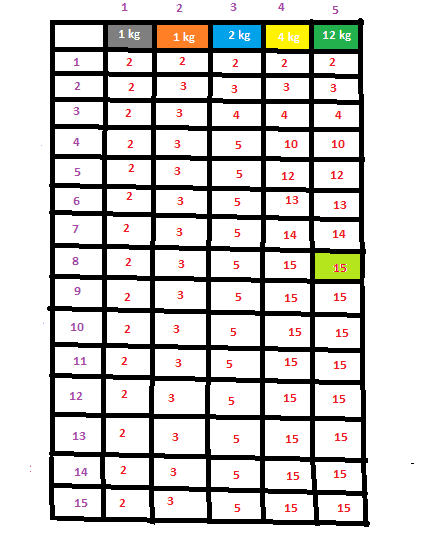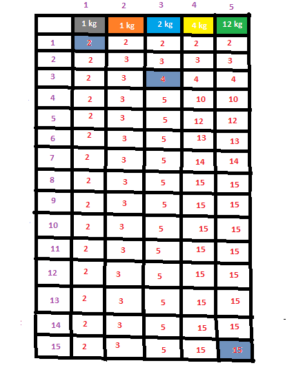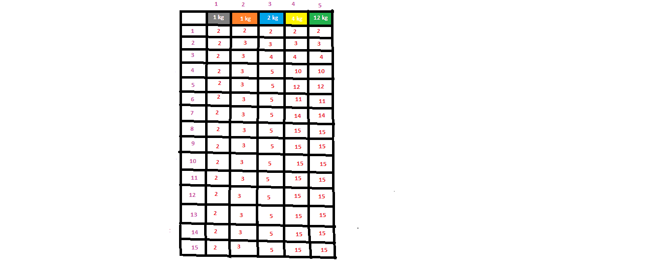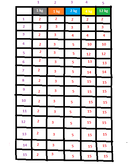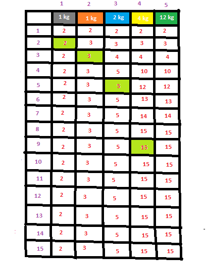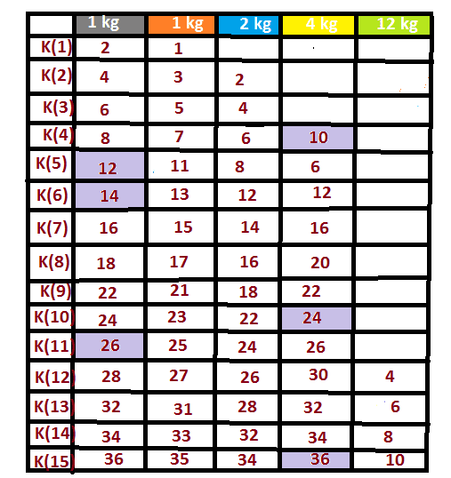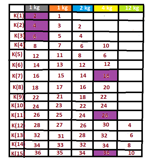 K(w)=max_{wi <= w} {K(w-wi)+vi}