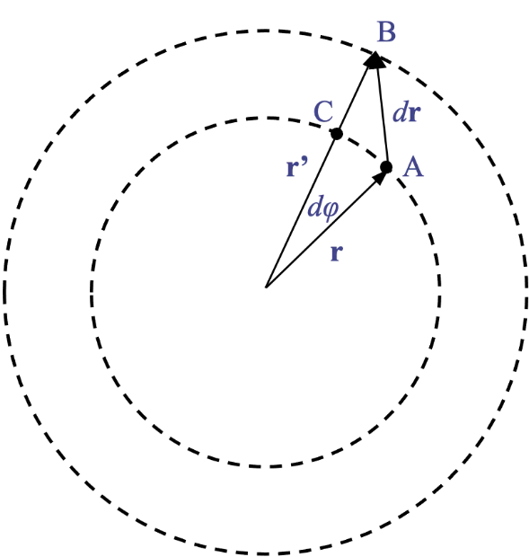 specific directed element along a circle in the xy-plane is $$d\mathbf{r}=\rho~d\phi~\hat{\phi}.$$The