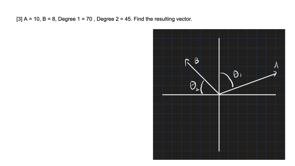 The discussion revolves around a vector addition problem presented in polar coordinates, specifically focusing on the decomposition of vectors into their rectangular components and the subsequent calculation of their resultant magnitude. Participants are reviewing concepts related to trigonometry and vector addition as part of SAT Physics preparation.
