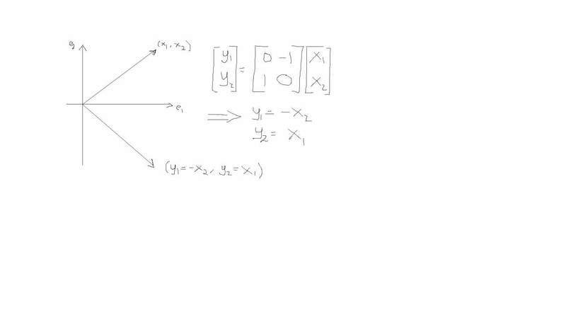 Rotate a vector v=x_1e_1+x_2e_2 90 degrees by using the rotation matrix.
