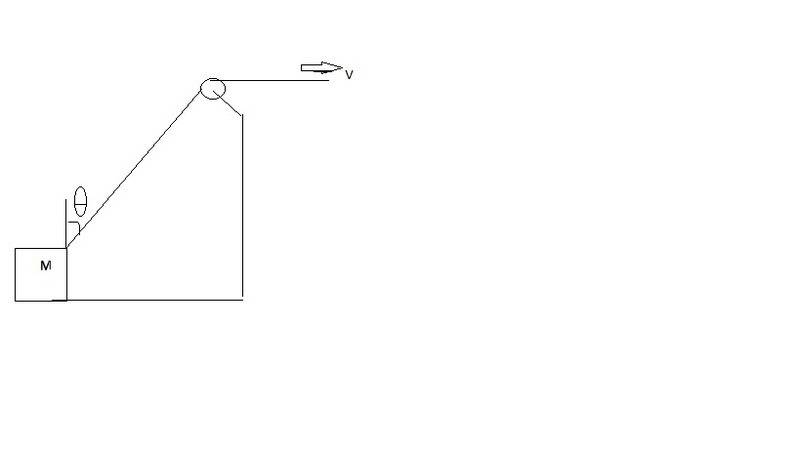 The discussion centers on the relationship between the velocity of a block being dragged by a string and the angle of the string. It clarifies that the block's horizontal velocity is expressed as v/sinθ, as opposed to vsinθ, due to the geometry of the situation involving a right triangle formed by the block and the string. The rate at which the string is pulled directly influences the block's velocity along the surface, leading to the equation VB sinθ = v. This distinction is crucial for understanding how to properly relate the components of velocity in this context. The explanation emphasizes the importance of the angle in determining the correct expression for the block's horizontal velocity.