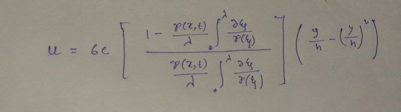 $$\frac{\partial (\rho U)}{\partial X}=\left(1-6\frac{Y}{h}+6\left(\frac{Y}{h}\right)^2\right)c\frac{d\rho(X)}{dX}$$