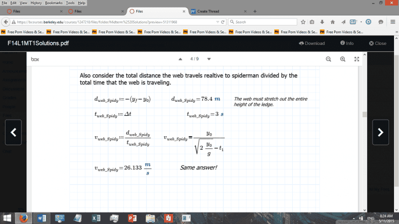 I am reviewing for my midterm and I just want to quickly understand a concept. It seems that velocity does not depend on the original reference frame. For example, let's say spider man is standing on the ground next to a 78.4 meter tall building, and it is known that if he shoots a web, it will reach the top of the building in 3 seconds. Now let's assume that he falls off of the building and shoots the web after falling for one second. It takes a total of four seconds for spiderman to land. According to the solutions to the practice midterm, the web will still reach the roof in three seconds. I don't understand this. First of all, why is the distance that is covered 78.4 meters, and not the displacement of spiderman after one second? Secondly, wouldn't it take longer for the web to reach the ledge, given that SpiderMan is initially moving downward?