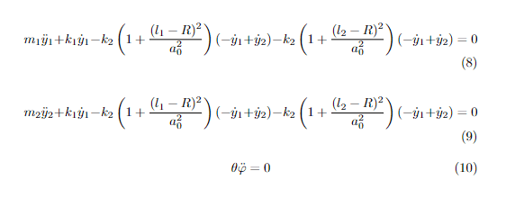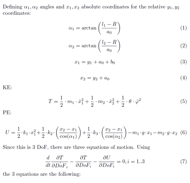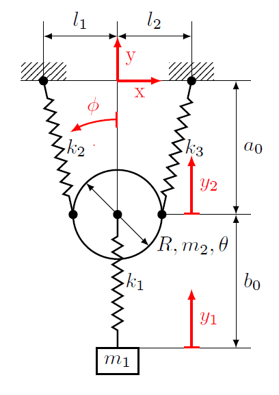 - The problem states that for the vertical spring system below we give boundary conditions to the y positions of m1 and m2, so considering this I have to work out the equations of motion. The ring on the top is supposed to be moving only vertically.
