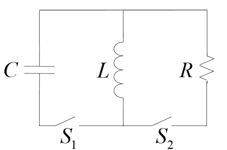 - In the circuit below the initial charge of the capacitor is Q. First, we shut S1 (S2 remains open) and wait for the first time in which the energy of the capacitor is minimal.