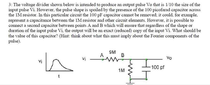 The discussion centers on the analysis of a voltage divider circuit involving complex impedances and sinusoidal inputs. Participants clarify that the output being a reduced copy of the input implies no phase difference for sinusoidal signals across all frequencies. The correct approach involves setting the "right" impedance to 1/9th of the "left" impedance, while also considering the conductivity, which is defined as the inverse of impedance. The specific conductivity values discussed include a "right" conductivity of 10-6 + jω10-10.