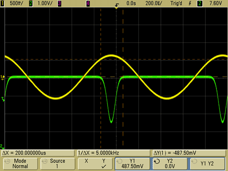If ##U_{e} \geq 0.5V##, ##U_{a}## sinks to 6,5V.
