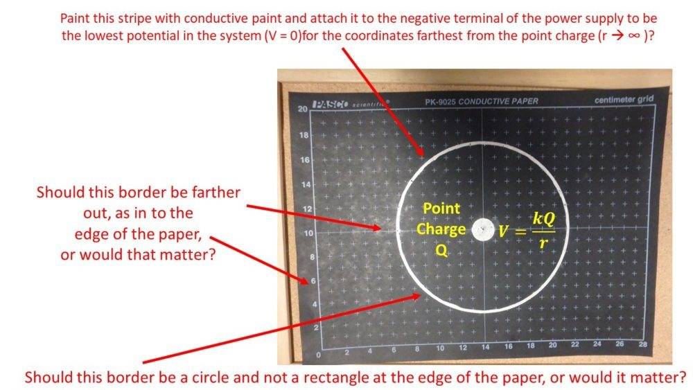 Note that in the jpeg “PointCharge.jpeg”, there is already a silver ring for this purpose. Should I move that ring closer to the edge of the paper? Could I replace the ring with a rectangular border on the edge of the paper? The ring in that paper does not seem far away enough from the point charge for “r --> ∞”.
