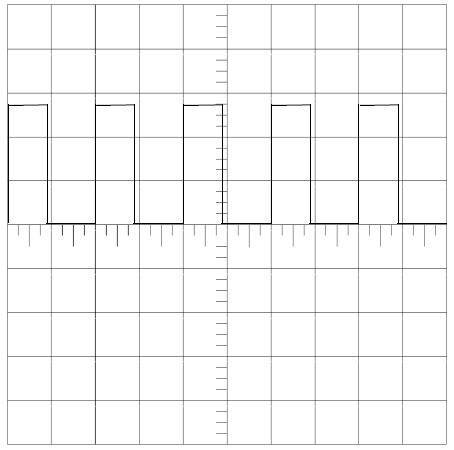 Your lab partner is opening and closing the tap switch to turn on and off the voltage from a battery. If you see the following trace on the screen and the VOLTS/DIV knob is set to 0.5 V and the TIME/DIV dial is set to 2s/DIV, you can tell that the voltage of the battery is approximately how many volts?