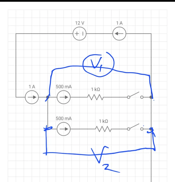 TL;DR Summary: I would like to know the voltmeter readings on the two resistors separately in the picture in the following cases , When one of the keys is closed When both of them are opened (Knowing that the battery has negligible internal resistance)