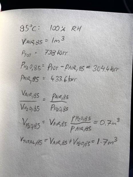 Some calculations rely on assumptions about the ideal gas behavior and the treatment of water vapor and liquid phases, which may not fully capture the complexities of the system. The discussion also highlights the importance of precision in calculations and the potential for errors in mathematical expressions.