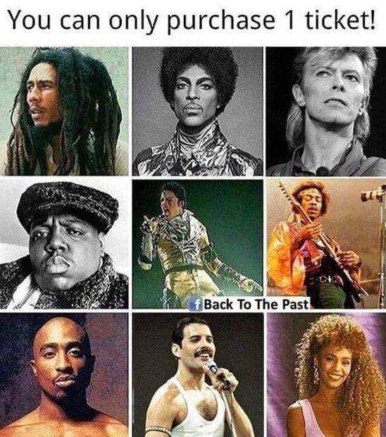 Bob Marley, Prince, David Bowie, Notorious B.I.G., Michael Jackson, Jimi Hendrix,