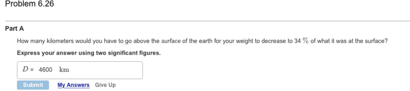 So I tried applying it to my situation. I wrote 34/100=r'^2/(6.38*10^6)^2. Solving for r' I got an answer of x=3.72*10^6meters=3720km. The correct answer of 4600km is displayed in the screen shot attached. I really don't understand how to do these problems, though I do understand that Fg is inverse square proportional to r. Any help would be greatly appreciated. Thanks.