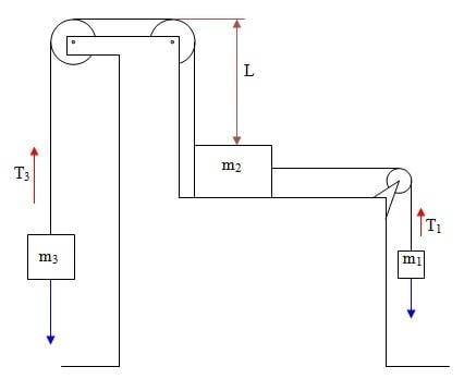 No friction. m3=5m, m2=12m, m1=3m
