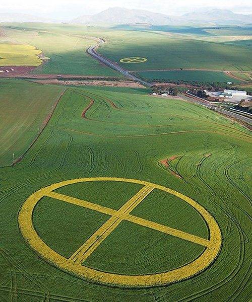 strijdom van der merwe plants two Earth symbols with canola and wheat in south africa​