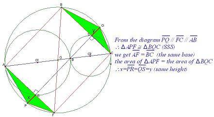 - A detailed geometric argument is presented involving angles and segments in a semicircle, leading to the conclusion that PR equals SQ under the given conditions.