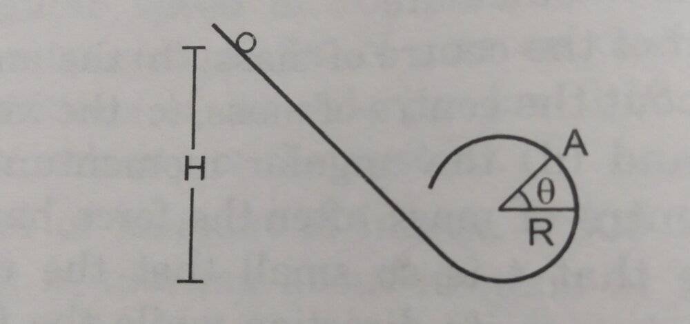 - Below figure shows a small spherical ball of mass m rolling down the loop track. The ball is released on the linear portion at a vertical height H from the lowest point. The circular part shown has a radius R.
