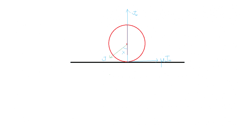 As the sphere do not jumps after the collision so ##J_{n}+mg=Jcos(x)##. Now mg is very small as compared to these impulses so I can assume