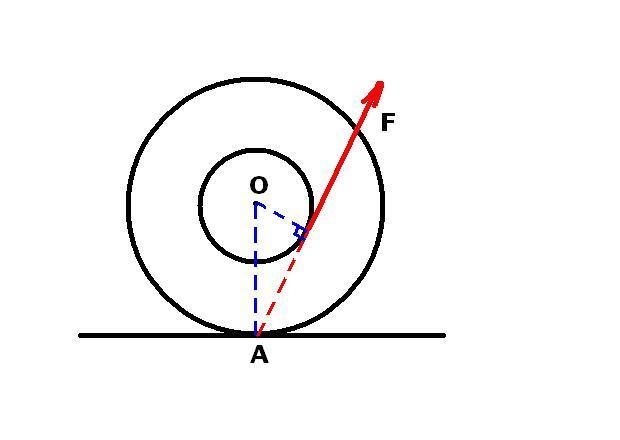 The picture is really small, so to give a legend of sorts: "r" is used for the diameter of the inner circle, "R" for the bigger one, "ß" for the angle and "F" for the force with which we pull the wire.