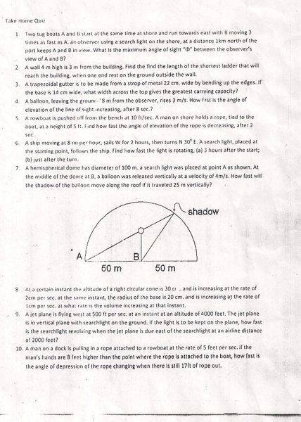 - Knowledge of related rates and their applications in real-world problems.