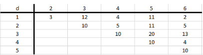 j = 3 , d(2,3)=d(4,3)=10 or j = 5 , d(4,5)=d(6,5)=10