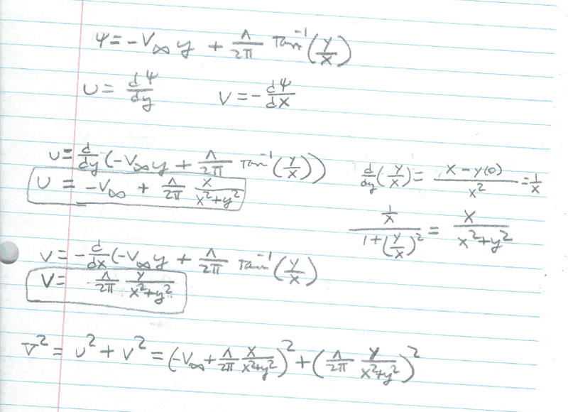 So I know at a large value of -x and y= o that my V^2 is equal to 1.Chestermiller said:You need to show that, at the x and y corresponding to theta = 66.8 degrees and psi = 0, the speed is the same as at y = 0, x = - infinity