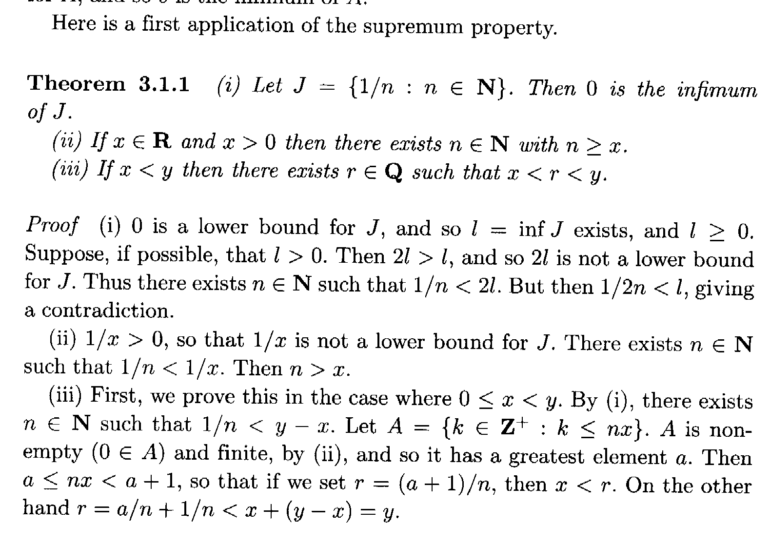 " ... ... There exists a least positive integer, $$q_0$$, say, such that 1$$/q_0 \lt y - x$$ ... ... "Can someone please explain exactly why this is true ... ..