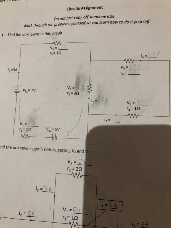 Can you show us some of your work so far (not just the results on the image, but tell us how you arrived at the values you've found so far)? I only see one resistor potential drop indicated (3 V for ##V_5##). Be sure to sketch in the polarity of any potential drops over components. That will come in very handy when you move forward in the problem.