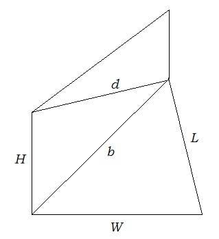 The box has the dimensions $L$, $W$ and $H$. As we can see the diagonal $d$ of the entire box is found from: