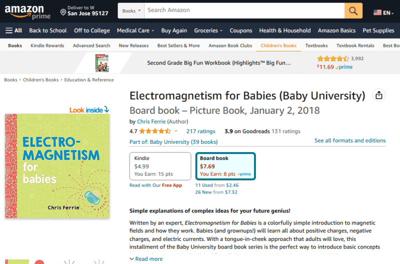 It's also a bit lacking with some of its explanations. For example it says magnetic fields are caused by electric currents. Which is a bit of a cop out since we know electric and magnetic fields actually cant exist without the other. And really gives no explanation to how a permanent magnet might work (ie unpaired electrons in the valence shell), even though use of permanent magnets are prevalent throughout the book.