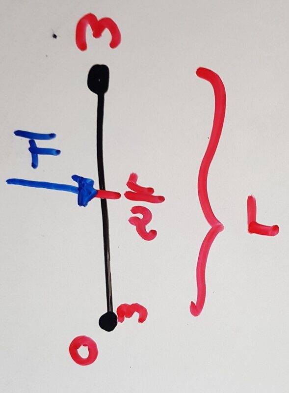 Consider a rod of length ##L## and negligible mass, with two balls of mass ##m## attached to its ends. Its centre of mass is at ##\frac{L}{2}##.