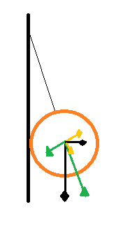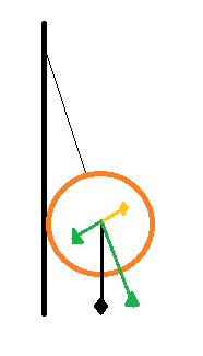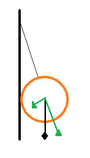 Imagine being in space and the ball is in the same position, only there is no forces acting on the string. As it approaches earth, the tension starts to increase. But the force is only vertical, yet the ball and the wall will want to start pushing against each other. What is it about the string that causes the horizontal component of force?