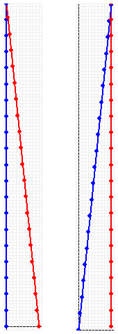 In the left-hand diagram, the supernova is in motion and we are at rest. Note that the red dots are slightly wider spaced than the blue ones because of time dilation - there are 20 red dots and 21 blue dots. In the right-hand diagram, we are in motion and the supernova is at rest. In this frame our clocks are time-dilated, but we started them early - so there are still 20 red dots and 21 blue dots.