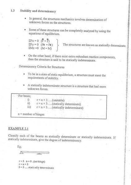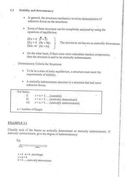 - There is a reiteration of the explanation regarding the supports and their reactions, with a specific example indicating that if there are no internal hinges, then 'n' would be zero.