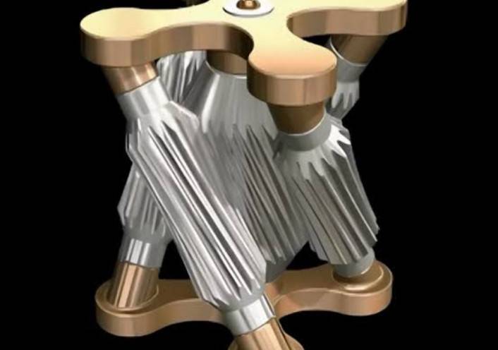 Art. Based on a hyperbolic (or: hyperboloidal) planetary gearset.Wo Wala Moiz said:Isn't there a specific name for such long helical gears?