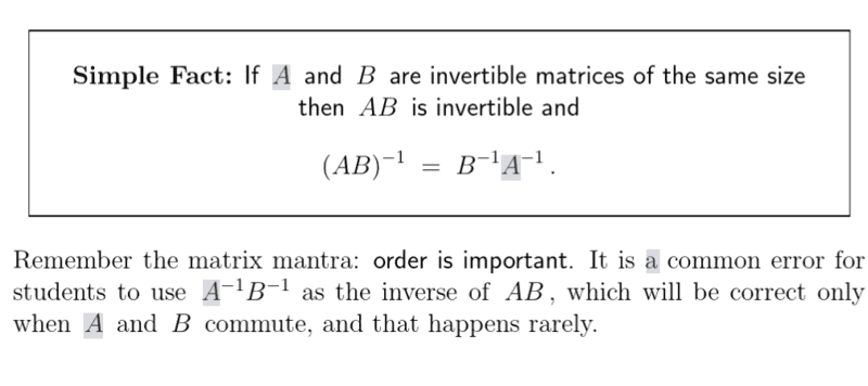 - Knowledge of matrix inverses