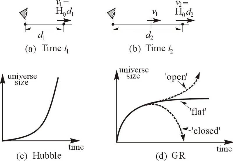 - Another participant elaborates on how the Hubble parameter decreases over time in a universe not dominated by variable dark energy, affecting the interpretation of recession velocities.