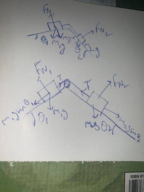 - Participants discuss the force balance equations for each mass, questioning the signs used in the equations and the rationale behind them. There are attempts to clarify the direction of forces and the resulting accelerations of the masses.